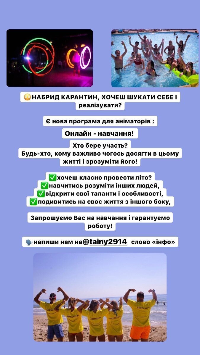 Заявку на навчання можна подати, написавши слово «інфо» на адресу @tainy2914