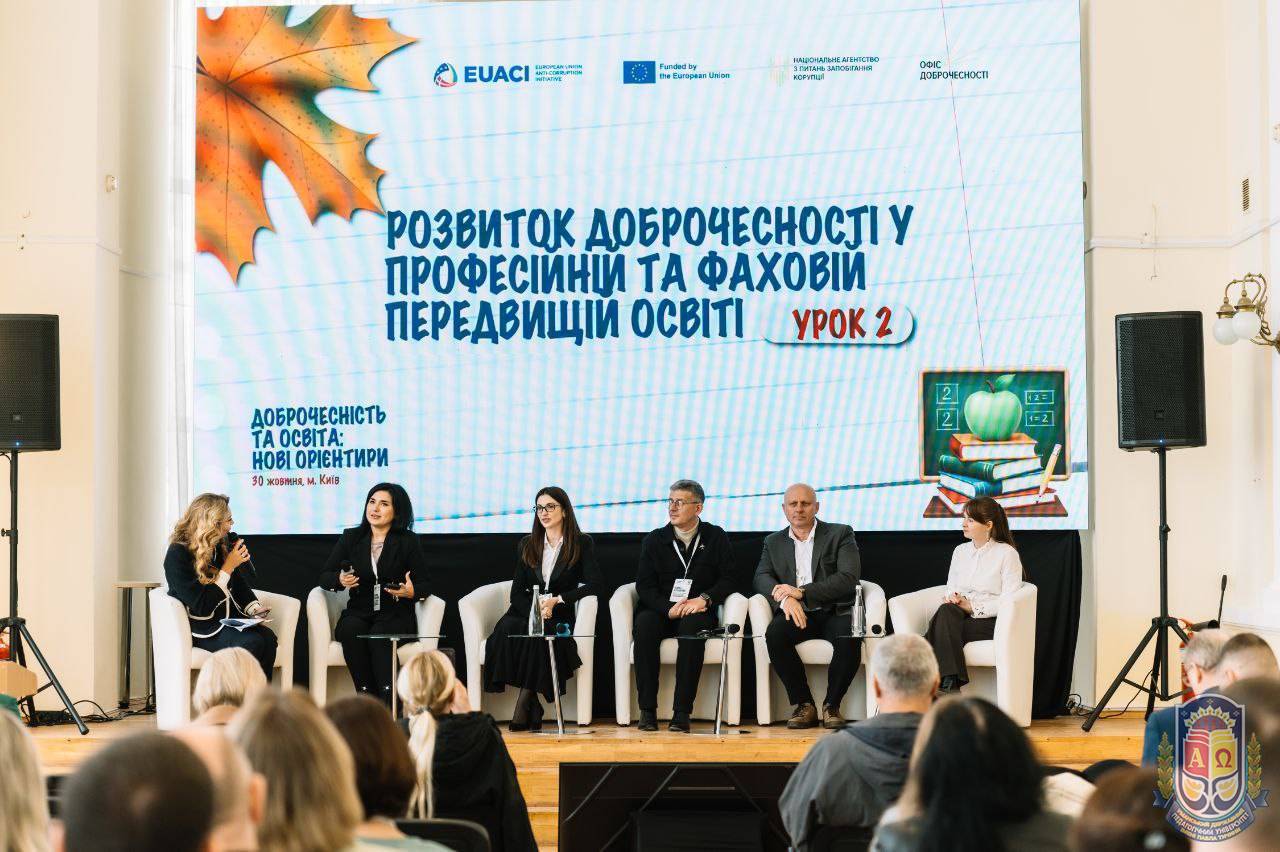 Захід зібрав понад 100 представників закладів середньої, професійної та вищої освіти, державних органів, міжнародних і громадських організацій. Учасники обговорили нові підходи до розвитку культури доброчесності в українській освіті – від шкіл і професійних закладів освіти до університетів.