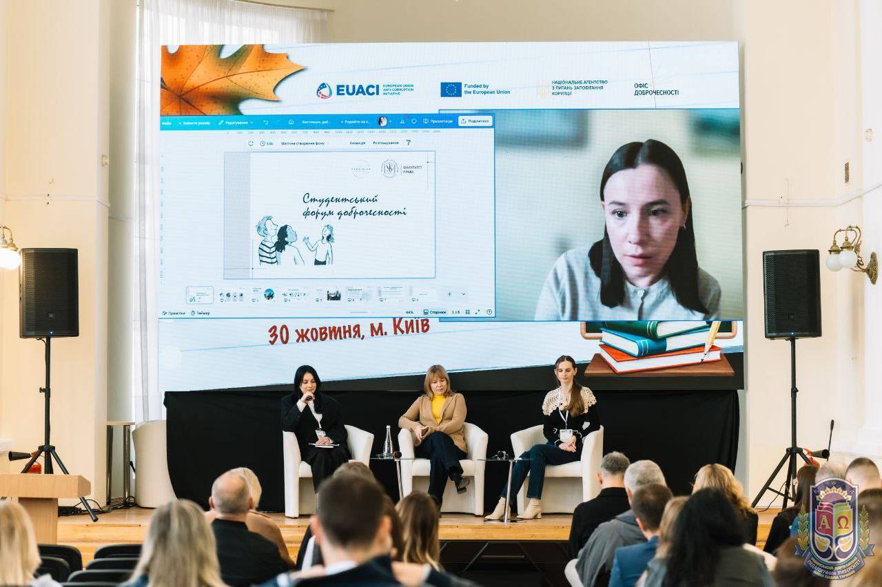 Голова студентського самоврядування Уманського державного педагогічного університету імені Павла Тичини Ольга Мелехіна стала учасницею форуму «Доброчесність та освіта: нові орієнтири» На форумі презентували Стратегію розвитку доброчесності в освіті на 2026–2030 роки .