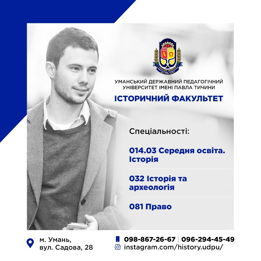 Історичний факультет Уманського державного педагогічного університету імені Павла Тичини є осередком ґрунтовної історичної освіти в регіоні.