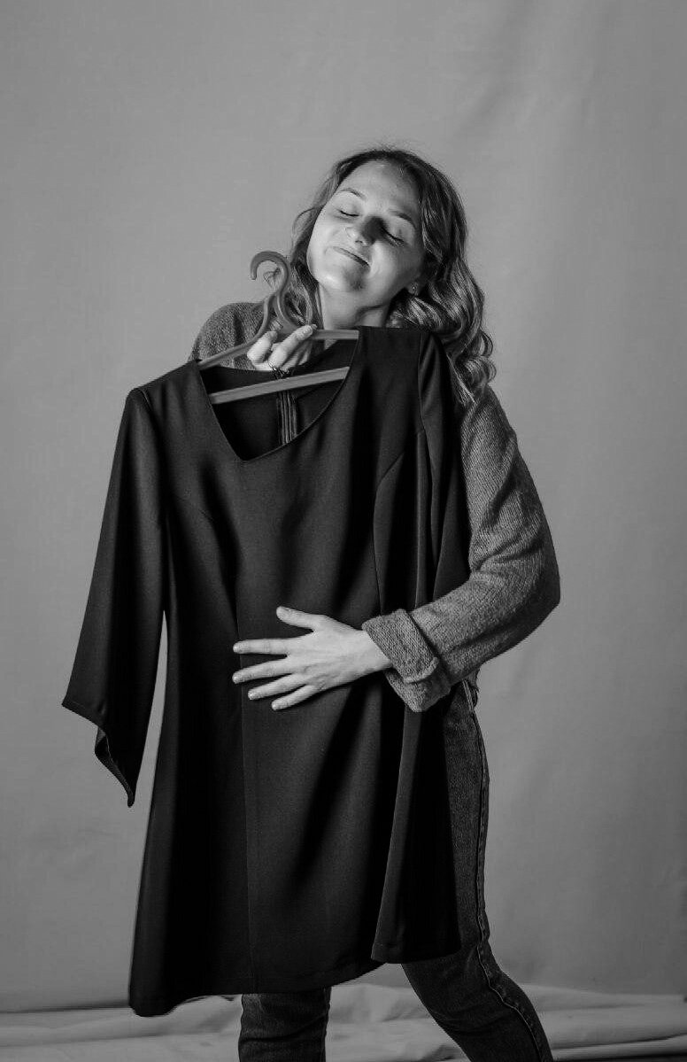 Впродовж двох років я вчилася вправлятися з тканинами. База у мене була, адже моя бабуся була професійною швачкою, окрім того півроку я працювала в Умані у магазині тканин. Вивчала фактуру тканини, принципи роботи з ними, фурнітуру.