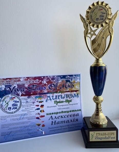 Член національної спілки театральних діячів України, Заслужений працівник культури України, художній керівник та режисер-постановник народного студентського театру драми і комедії Уманського державного педагогічного університету імені Павла Тичини Наталія Алексеєва отримала диплом володаря Гран-прі у номінації «Театральна творчість» («Читці-декламатори») на Міжнародному багатожанровому фестивалі-конкурсі «Viva stars of arts».