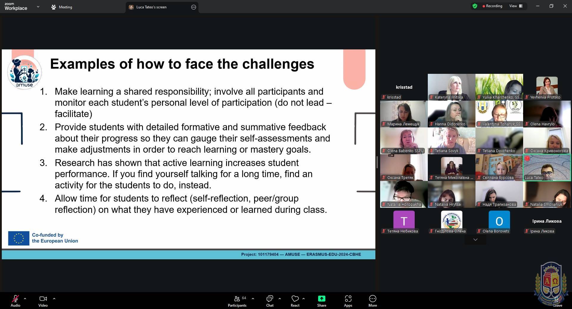 У межах онлайн-курсу проєкту AMUSE 17 вересня 2025 року відбувся другий вебінар, присвячений темі «Підходи ЄС до оновлення та розробки навчальних програм».