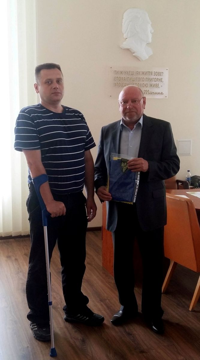 Нацгвардієць вручив святе знамено ректору університету, професору Олександру Безлюдному і розповів, що захищає цілісність і суверенітет нашої держави із 2014 року у складі батальйону імені Героя України, генерала Сергія Кульчицького. Солдати-добровольці військового формування, в якому служить Віталій, брали участь у боях під Дебальцевим на Донеччині. Тож предмети, які він приніс до музею, за словами учасника АТО, в прямому сенсі - з передової.