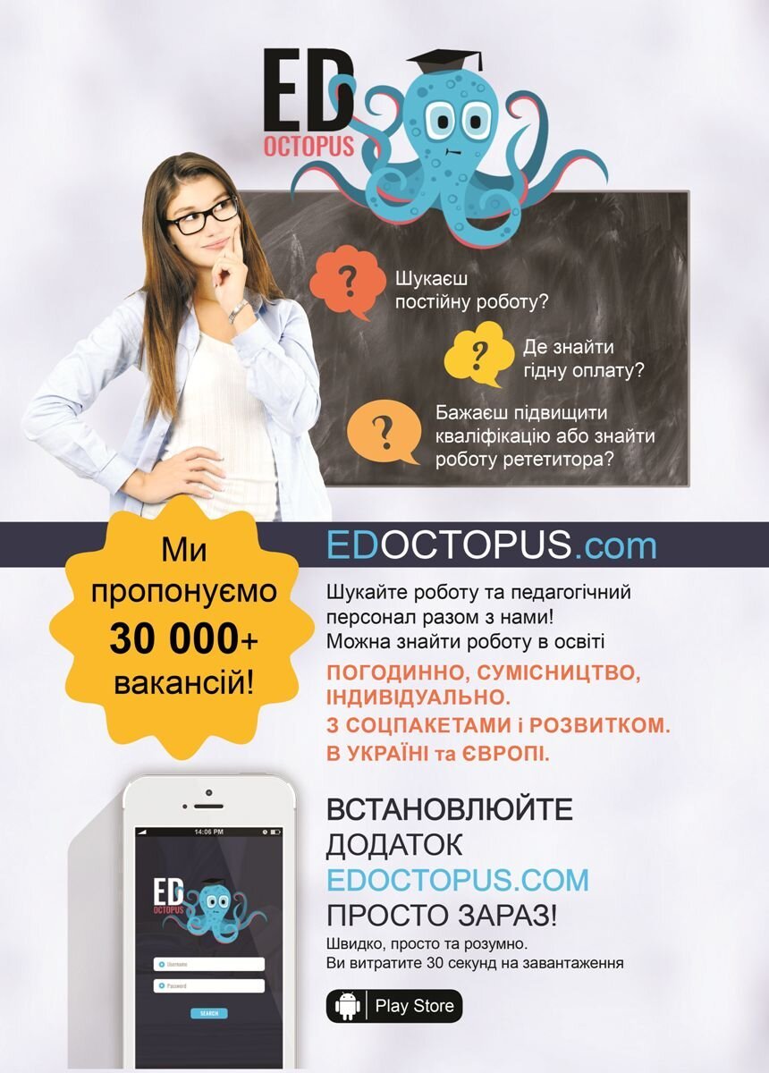 Представляємо Вам профільний ресурс з відбору кадрів в освіті – сайт www.edoctopus.com та мобільний додаток на Google Play edoctopus.com