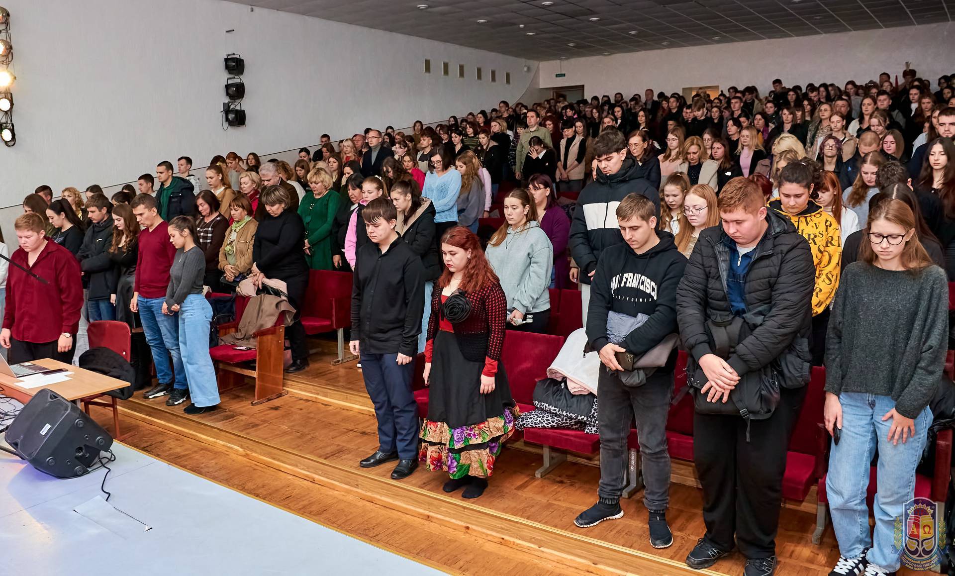 На заході присутні згадали воїнів, які боронять нашу Україну, а також хвилиною мовчання вшанували героїв, які загинули в боротьбі за мир.