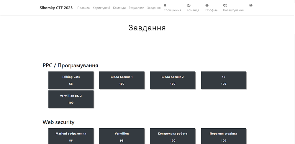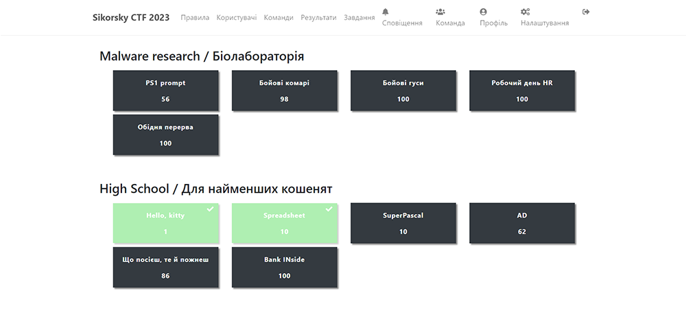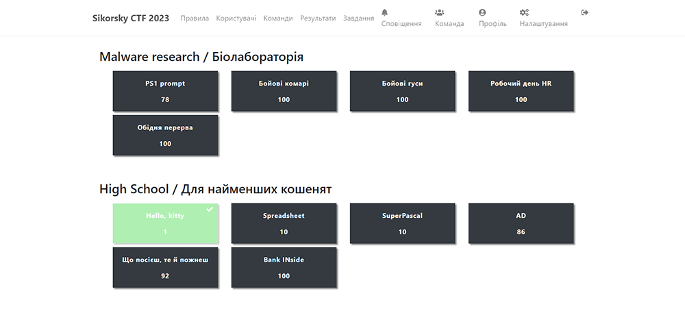 Під час змагання учасники мали розв’язати 40+ завдань, які вимагали технічних знань та критичного мислення у таких 8 категоріях: