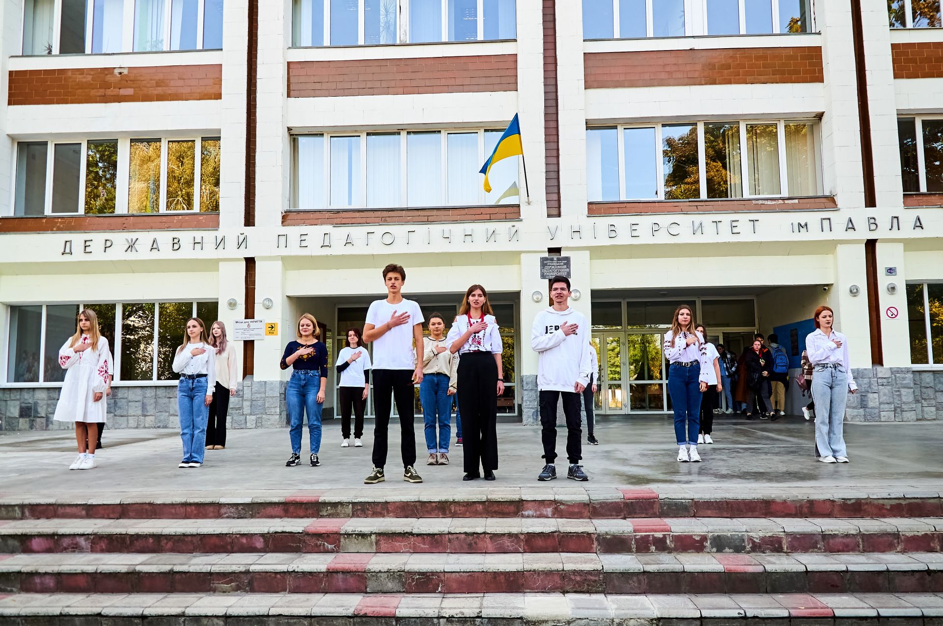 У межах діяльності національно-патріотичного табору «Дія» студенти факультету соціальної та психологічної освіти Уманського державного педагогічного університету імені Павла Тичини провели патріотичний флешмоб на підтримку Збройних сил України та вшанування українського козацтва.