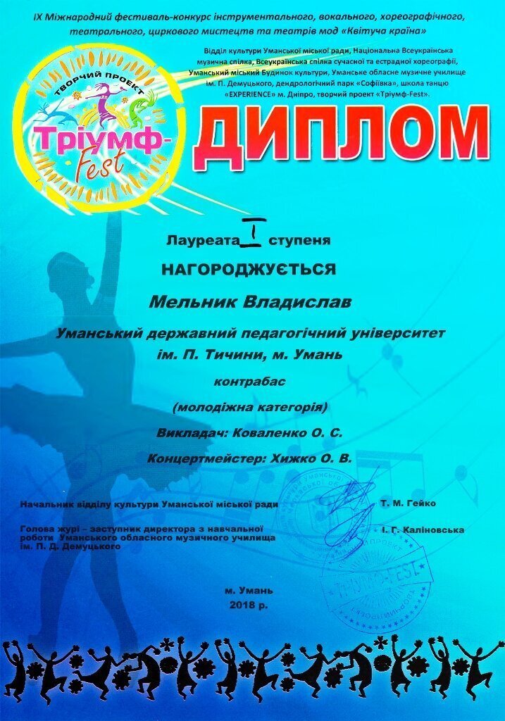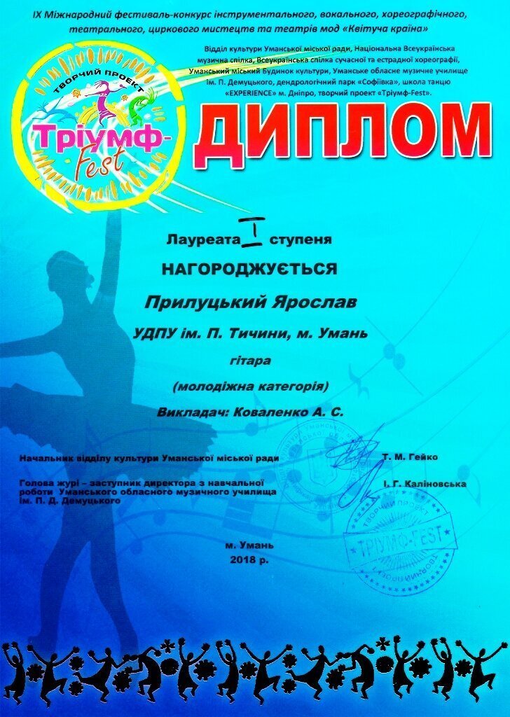 Студенти-інструменталісти факультету мистецтв УДПУ імені Павла Тичини гідно представили наш навчальний заклад на IХ Міжнародному фестивалі-конкурсі інструментального мистецтва «Квітуча країна», що проходив на базі Уманського обласного музичного училища ім. П.Д.Демуцького.