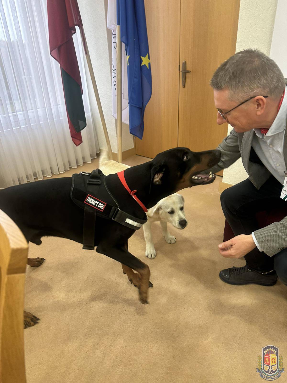 Особливою частиною програми стала тематична зустріч із литовськими професіоналами у сфері каністерапії Міндаугас Сеюнас (Литовський університет медичних наук), які поділилися практичним досвідом і провели майстер-клас із собаками-терапевтами Аргісом та Луною.