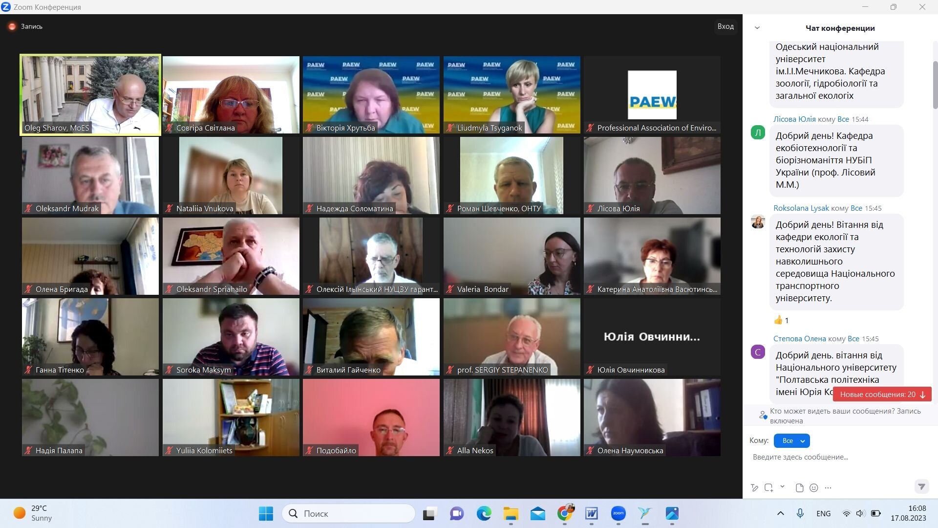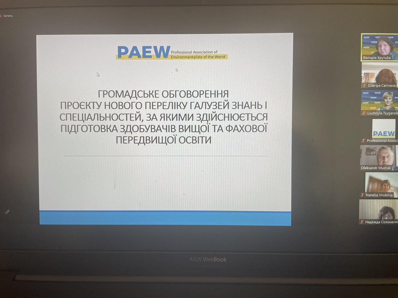 На запрошення Асоціації професіоналів довкілля (Professional Association of Environmentalists of the World) професор Уманського державного педагогічного університету імені Павла Тичини Світлана Совгіра долучилася до обговорення проєкту нового переліку галузей знань і спеціальностей, за якими здійснюється підготовка здобувачів вищої та фахової передвищої освіти.