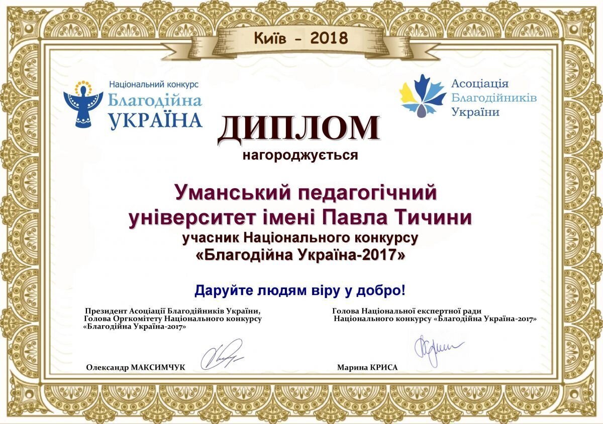Наш університет як активний учасник і організатор численних доброчинних заходів взяв участь у Національному конкурсі «Благодійна Україна» та одержав диплом учасника.