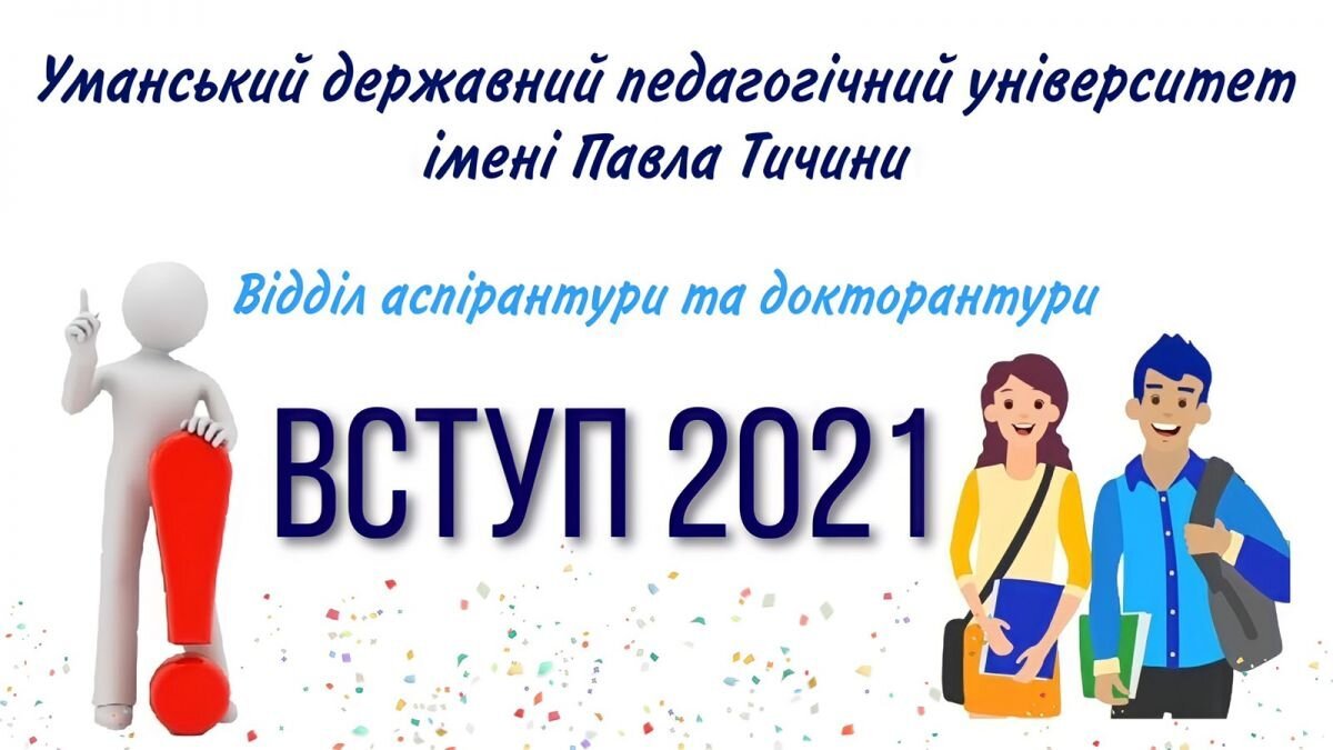 Уманський державний педагогічний університет імені Павла Тичини запрошує на навчання до аспірантури для здобуття вищої освіти ступеня доктора філософії(PhD) за такими спеціальностями:
