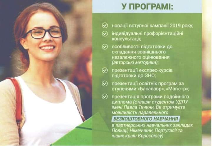 - презентація програми подвійного диплома (ставши студентом УДПУ імені Павла Тичини, Ви отримуєте можливість паралельного безкоштовного навчання в партнерських навчальних закладах Польщі, Німеччини,Португалії та інших країн Євросоюзу).