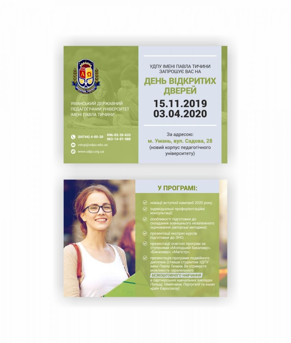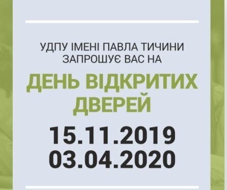 15 листопада 2019 року з 8:00 до 16:00 Уманський державний педагогічний університет імені Павла Тичини запрошує випускників закладів загальної середньої освіти та студентів ЗВО І-ІІ рівня акредитації на день відкритих дверей.