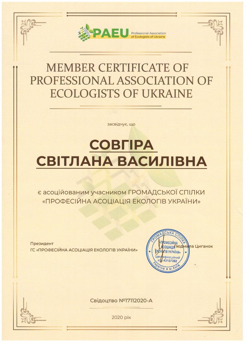 Завідувач кафедри хімії, екології та методики її навчання, доктор педагогічних наук, професор Світлана Совгіра стала асоційованим учасником громадської спілки.