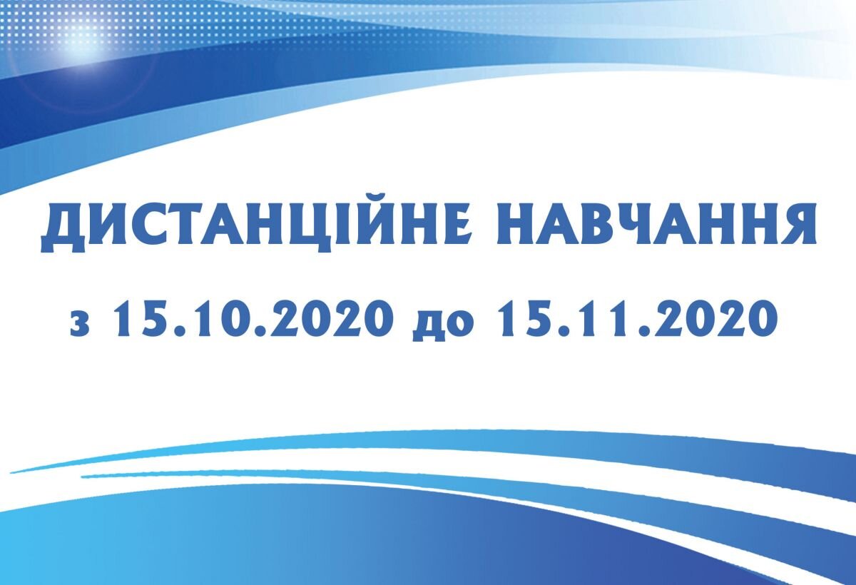 Відповідно до листа МОН України № 1/9-576 від 12 жовтня 2020 року «Щодо тимчасового переходу на дистанційне навчання» в університеті запроваджено дистанційне навчання в період з 15 жовтня до 15 листопада 2020 року.