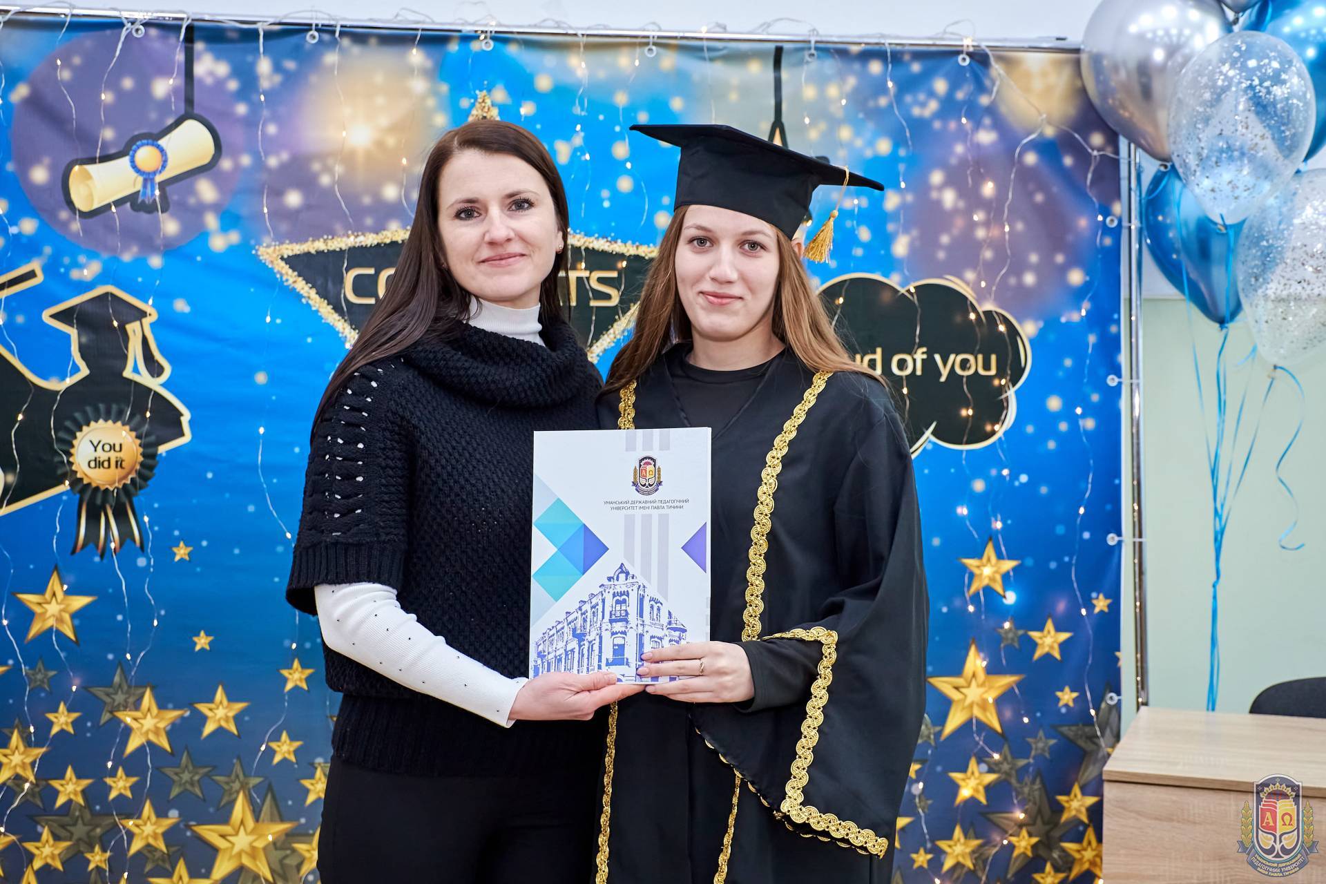 Окрім дипломів магістра, заступники декана – кандидат педагогічних наук, доцент Ірина Щербань та кандидат педагогічних наук, доцент Євгенія Процько вручили випускникам почесні грамоти за високі досягнення у навчанні, науковій та громадській діяльності.