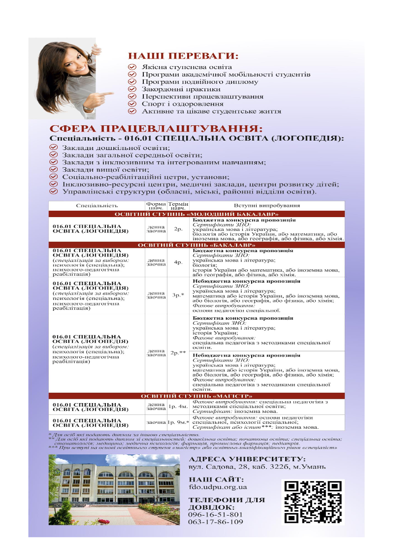 Сфери працевлаштування випускників факультету дошкільної та спеціальної освіти: