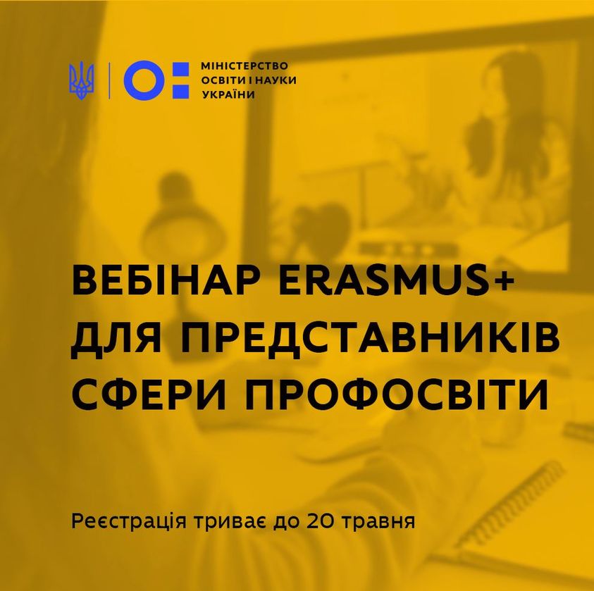 Представники місцевої влади, навчально-методичних центрів та закладів професійної освіти запрошуються до участі у вебінарі «Детально про конкурси ERASMUS+ для П(ПТ)О», який відбудеться 21 травня 2021 р .