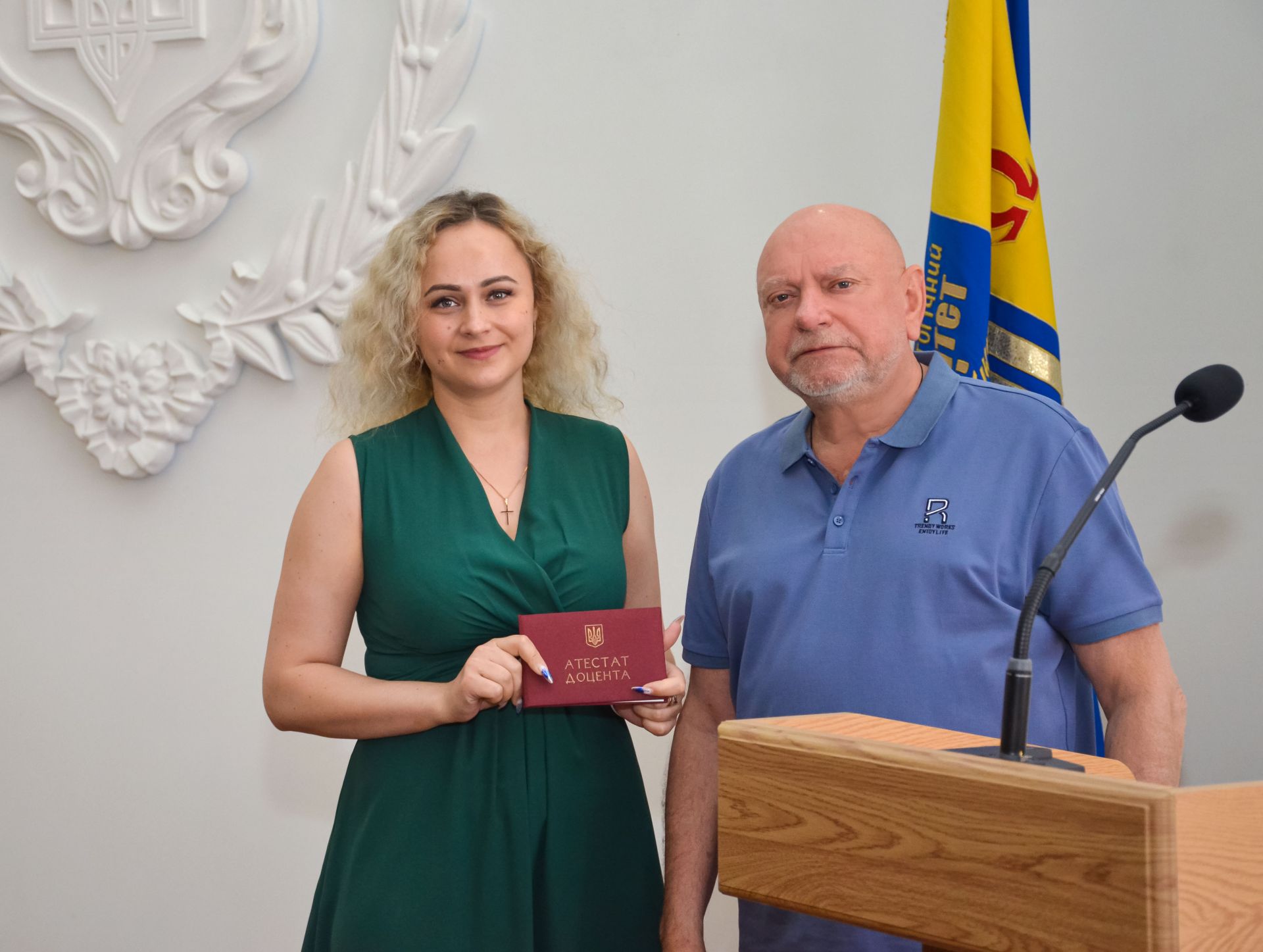 На початку зібрання ректор Олександр Безлюдний вручив атестати доцента Людмилі Черніченко, Ірині Калиновській, Наталії Савченко. Вітаємо колег та бажаємо успіхів, сил і наснаги, міцного здоров’я, мирного неба, нехай результативними і плідними будуть усі ваші починання.