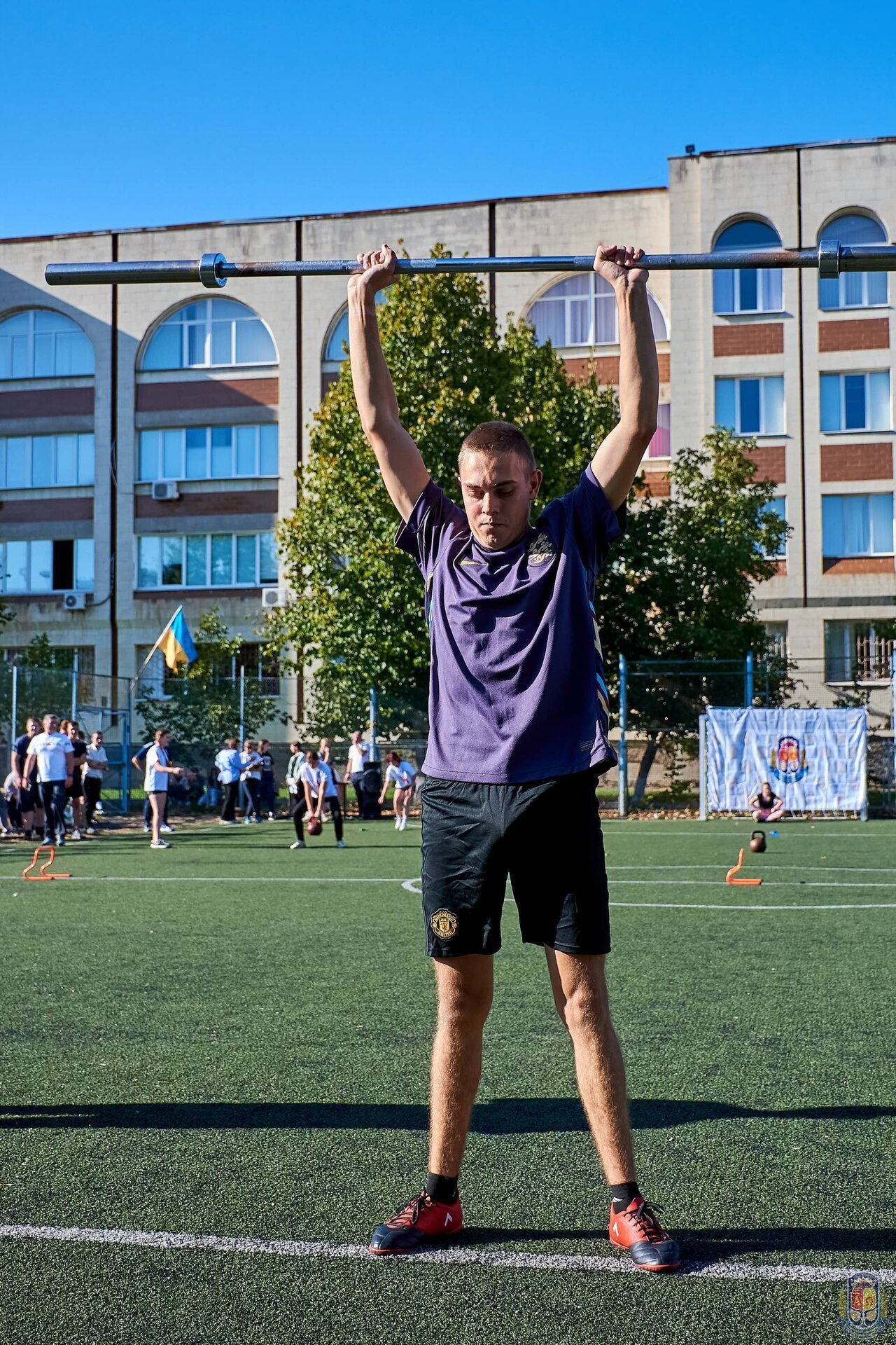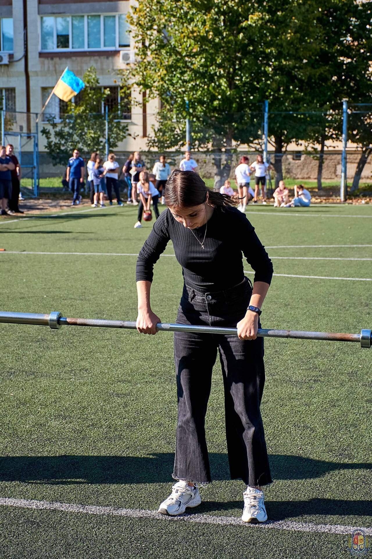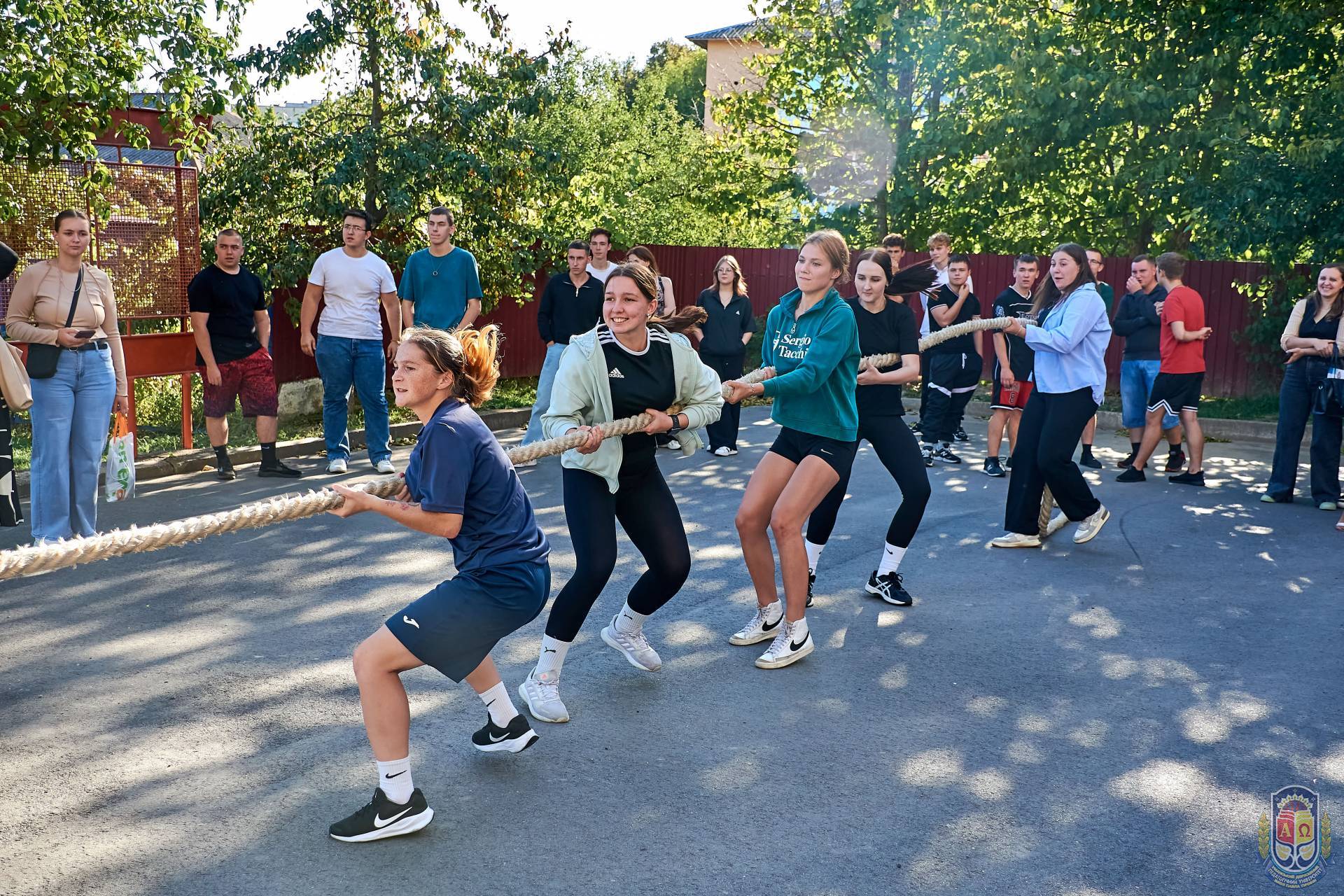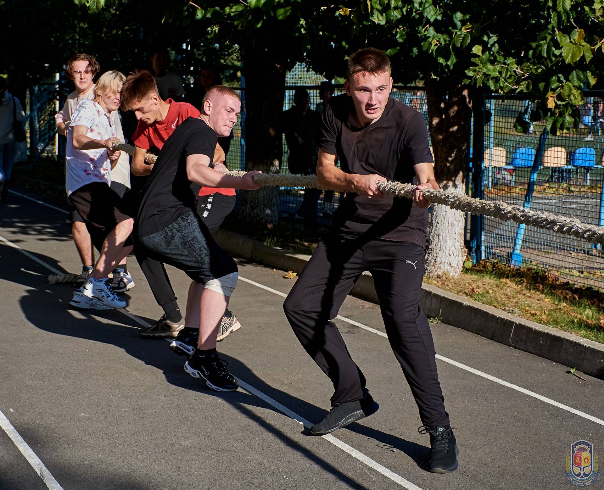 Загальноуніверситетський захід розпочався з руханки, а далі були спортивні змагання з армреслінгу, вправи на кидки на влучність в кільце, кросфіт, перетягування канату.