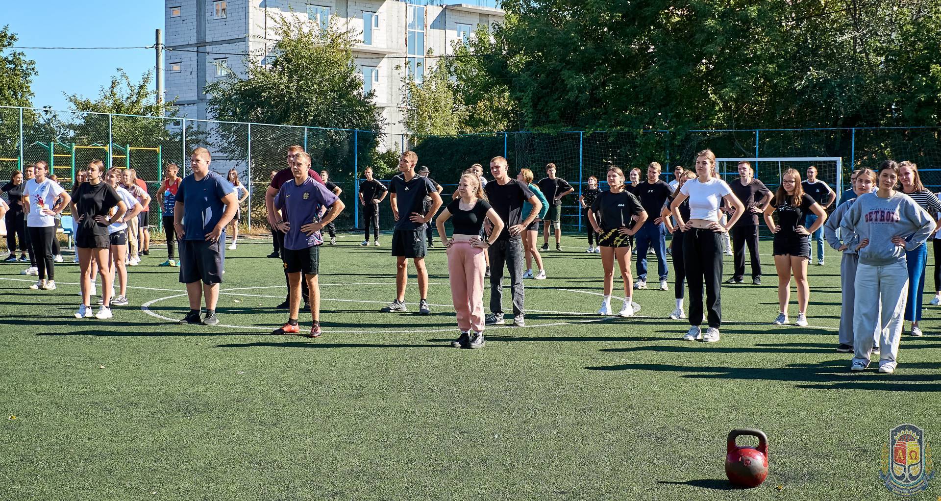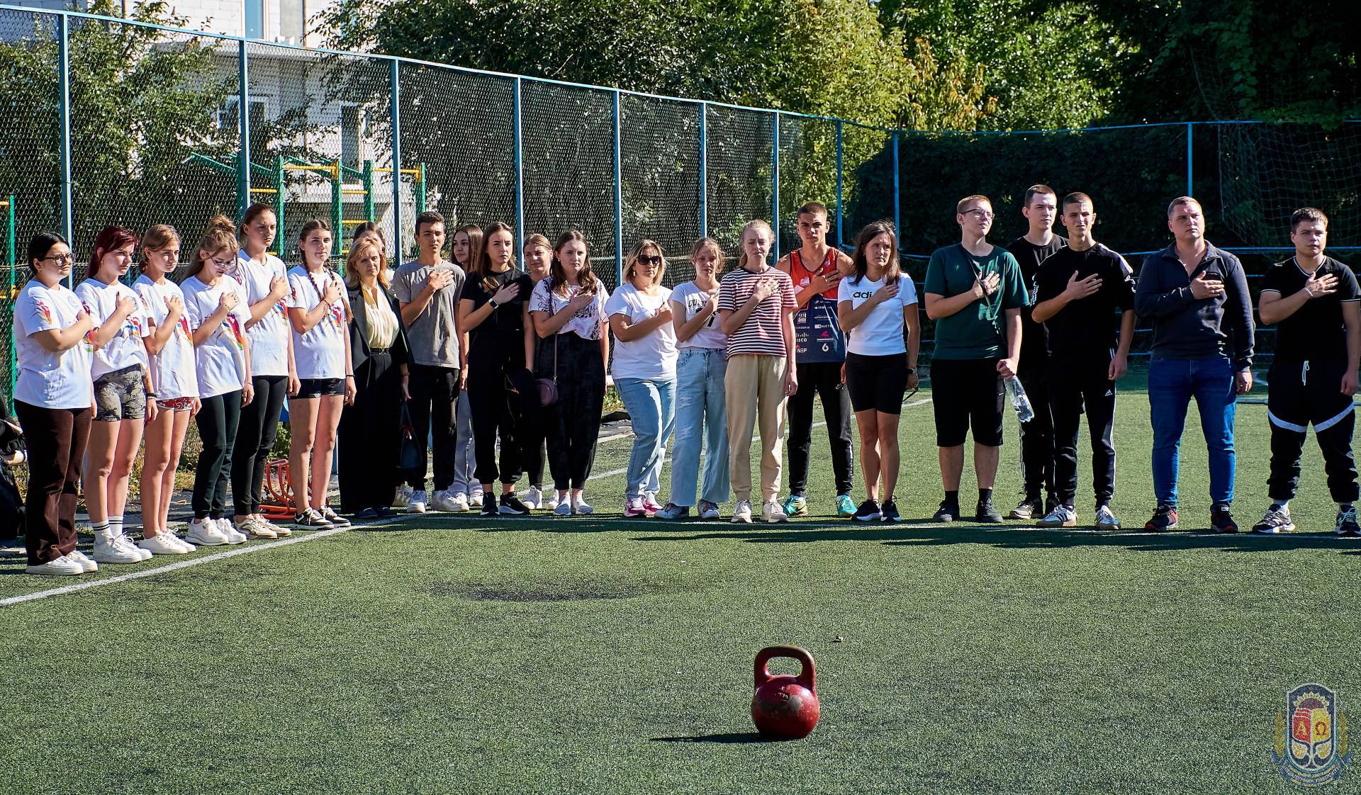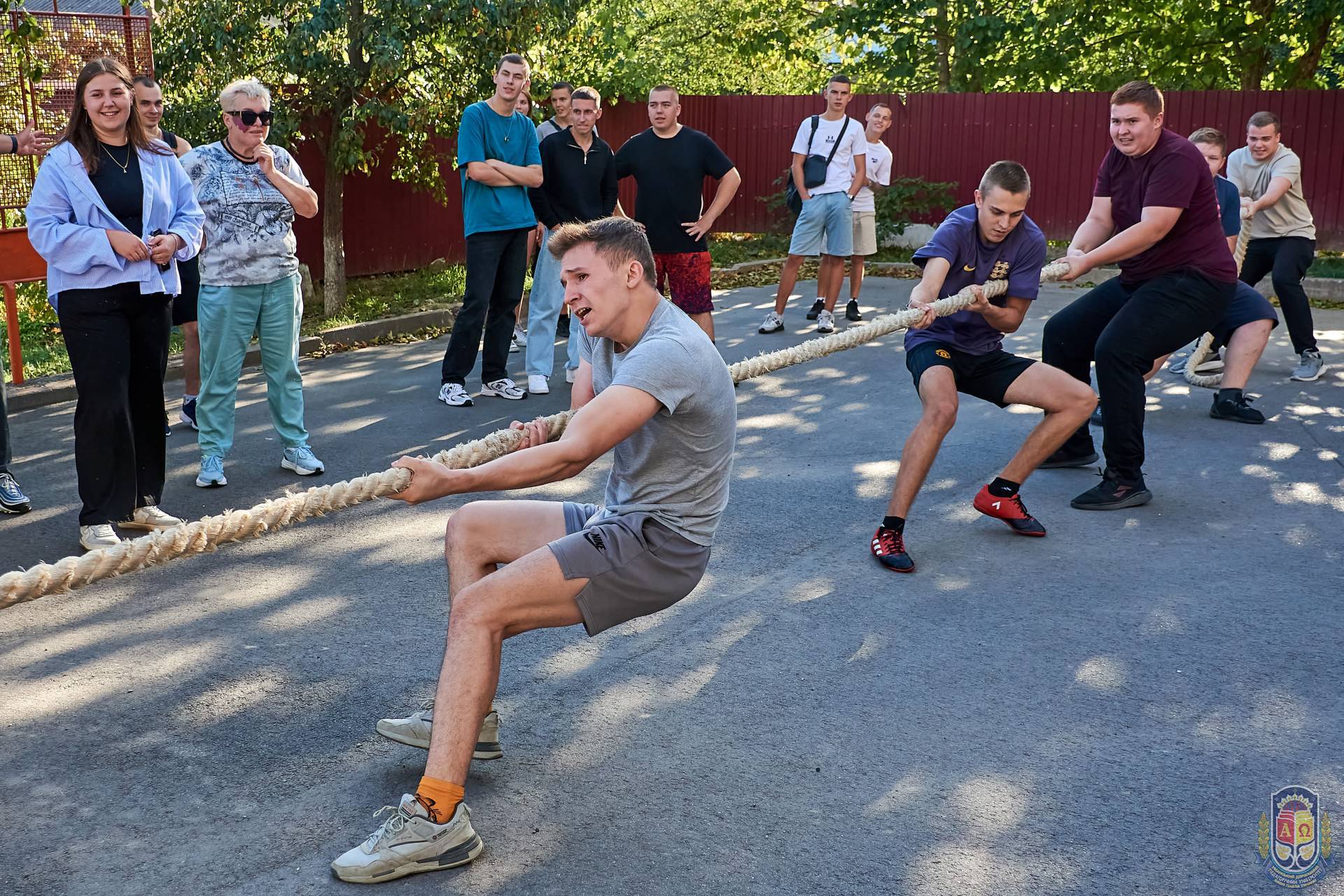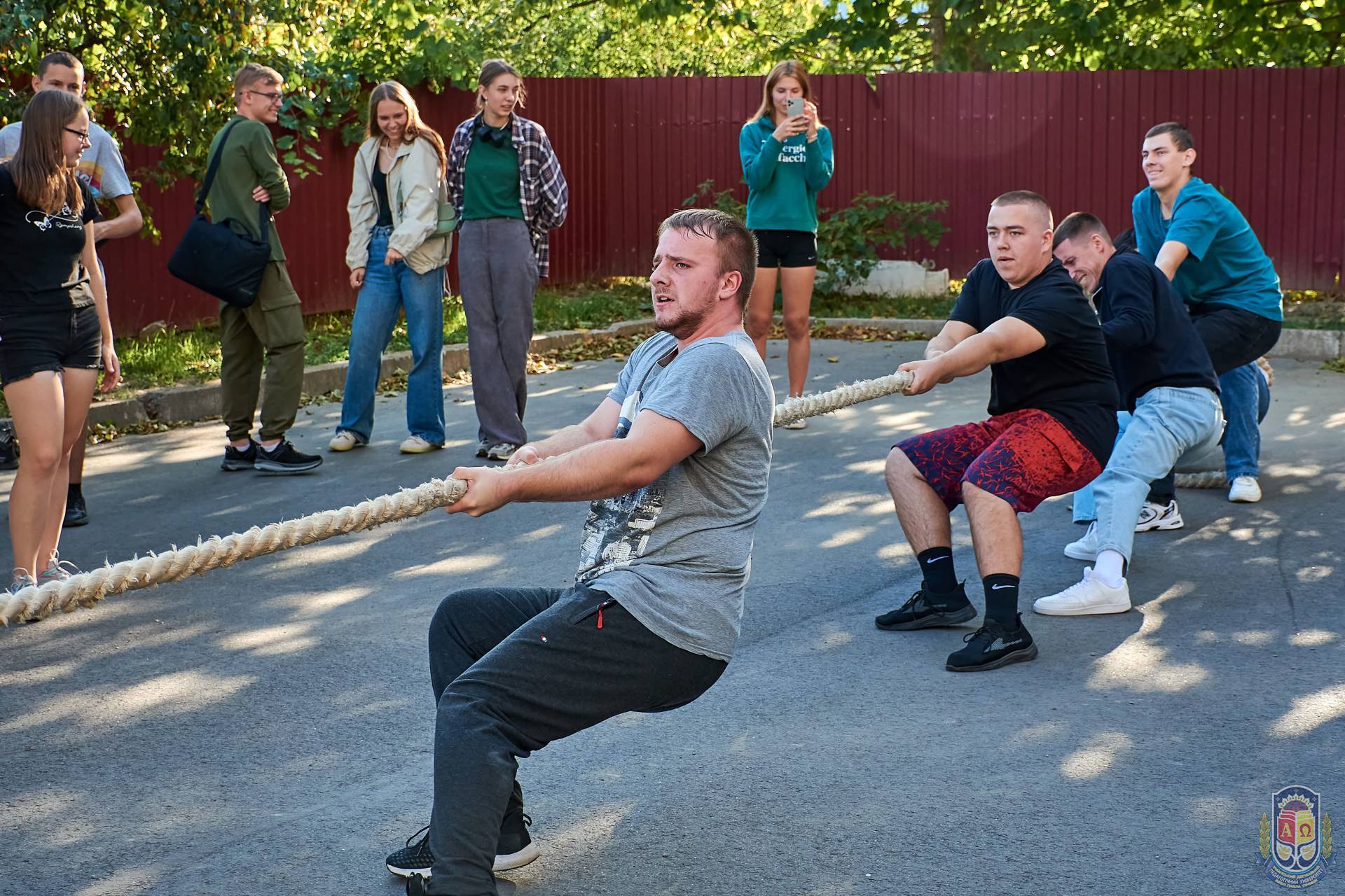 Загальноуніверситетський захід розпочався з руханки, а далі були спортивні змагання з армреслінгу, вправи на кидки на влучність в кільце, кросфіт, перетягування канату.