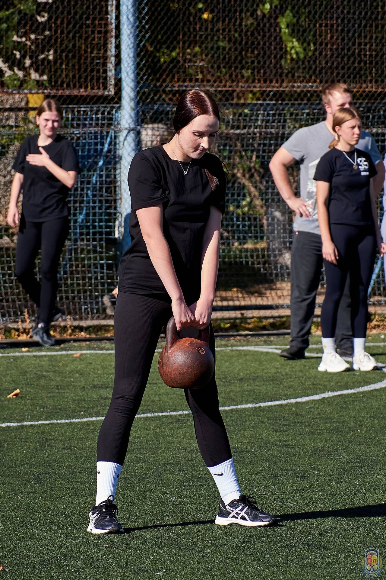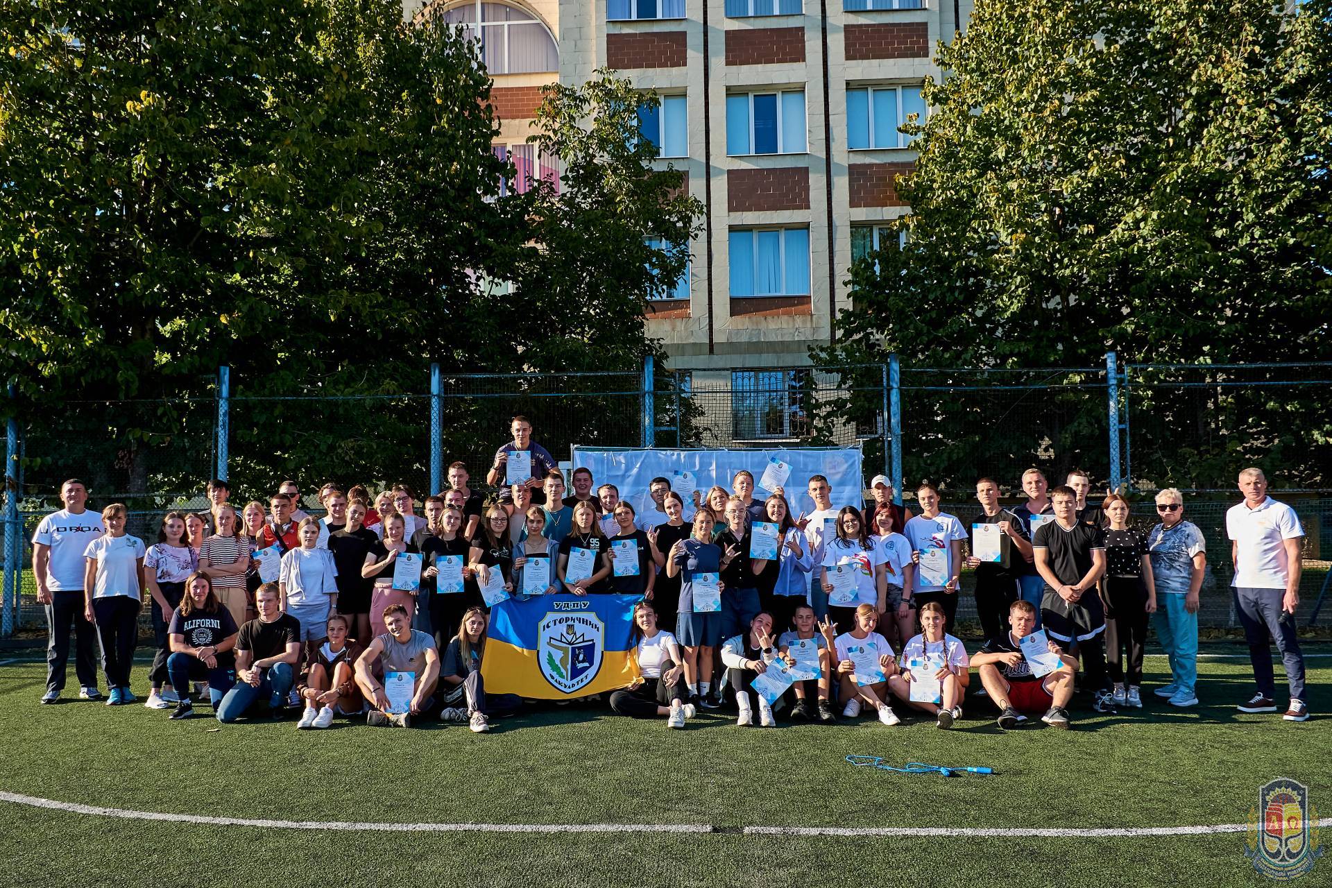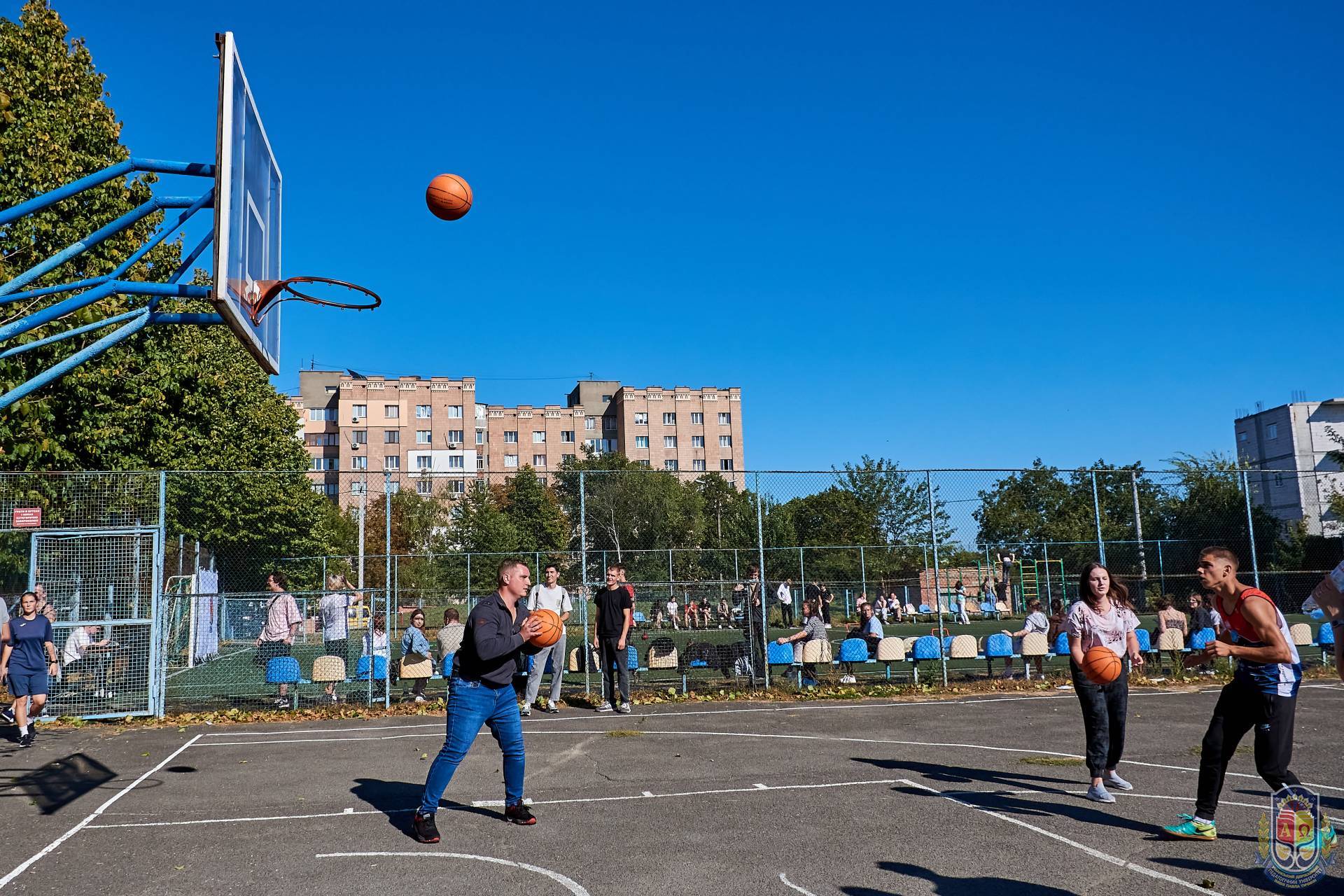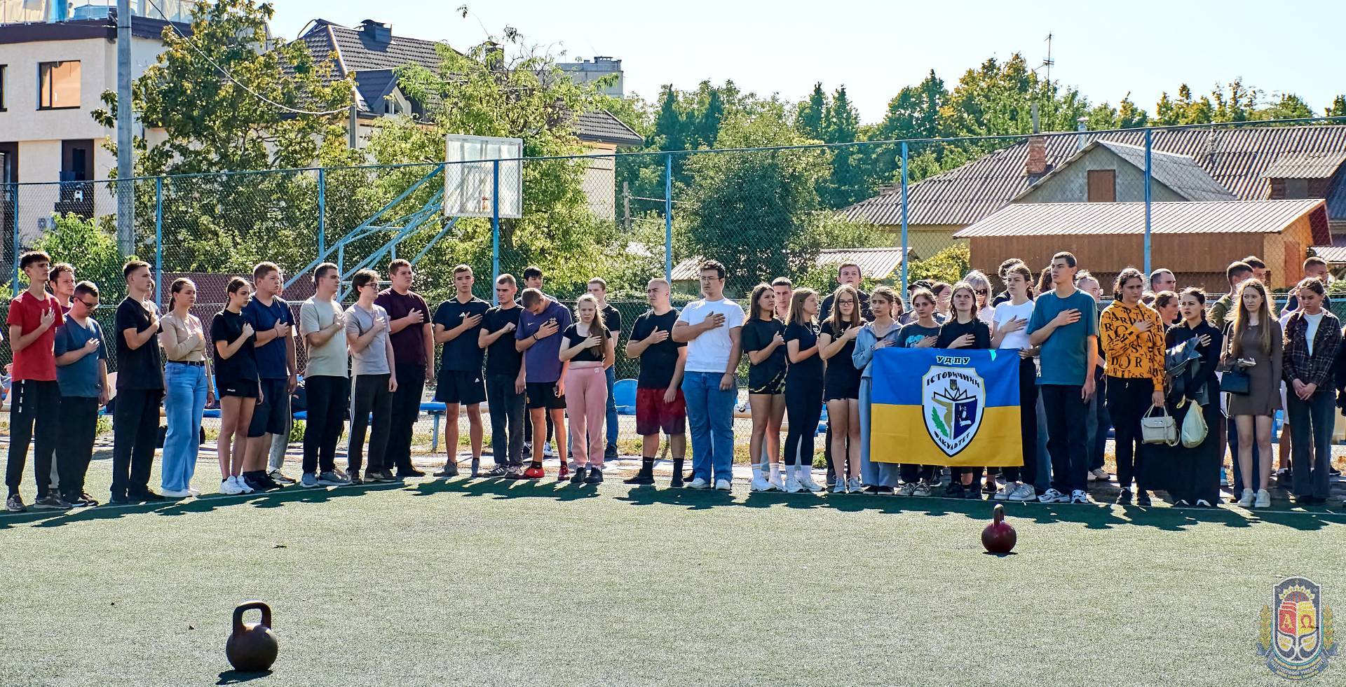 Загальноуніверситетський захід розпочався з руханки, а далі були спортивні змагання з армреслінгу, вправи на кидки на влучність в кільце, кросфіт, перетягування канату.