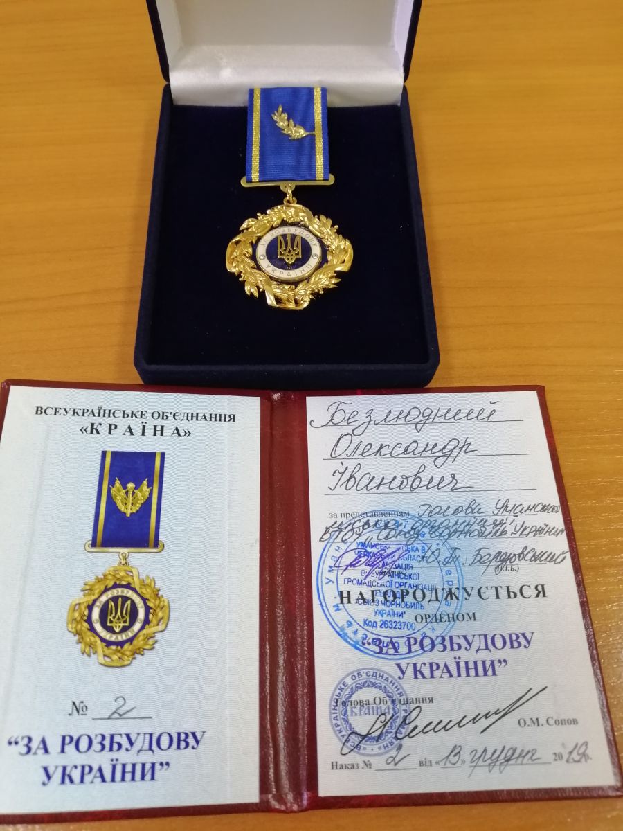 Сьогодні під час засідання Вченої ради голова Уманської організації «Союз Чорнобиль України» Юрій Березовський вручив ректору університету Олександру Безлюдному відзнаку Всеукраїнського об’єднання «Країна» – орден «За розбудову України».