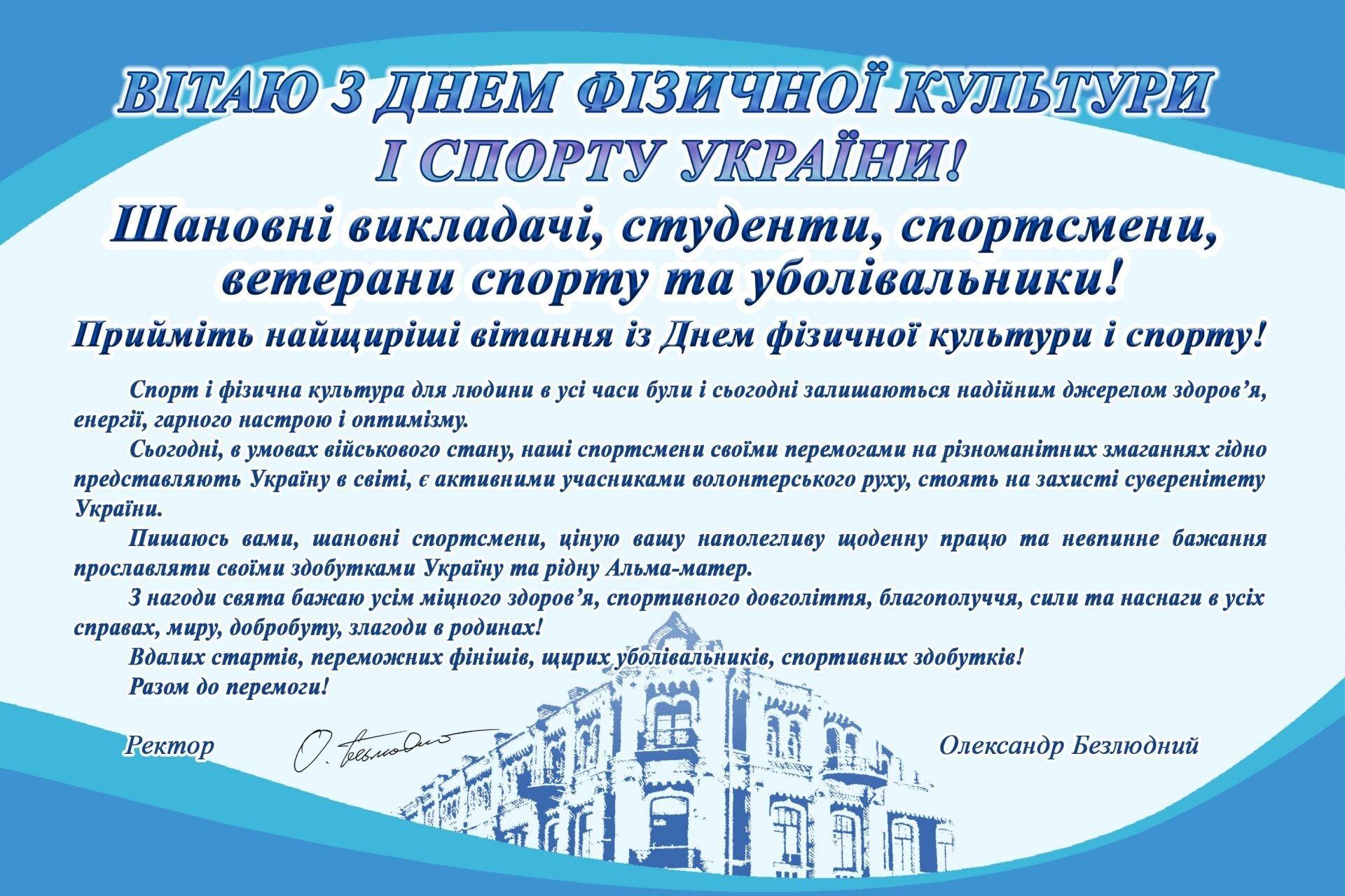 Шановні викладачі, студенти, спортсмени, ветерани спорту та уболівальники!