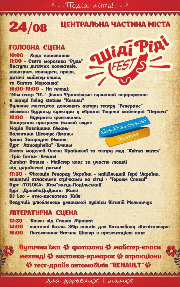 10:00 – Хода гідності «Тобі, Україно!» по маршруту: площа Соборності – сквер імені Тараса Шевченка.