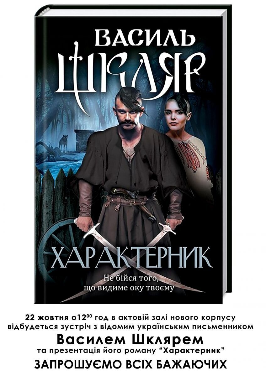 22 жовтня о 12.00 годині в актовій залі Уманського державного педагогічного університету імені Павла Тичини (новий корпус, Садова,28) відбудеться зустріч з відомим українським письменником Василем Шклярем та презентація його роману «Характерник». Запрошуються усі бажаючі.