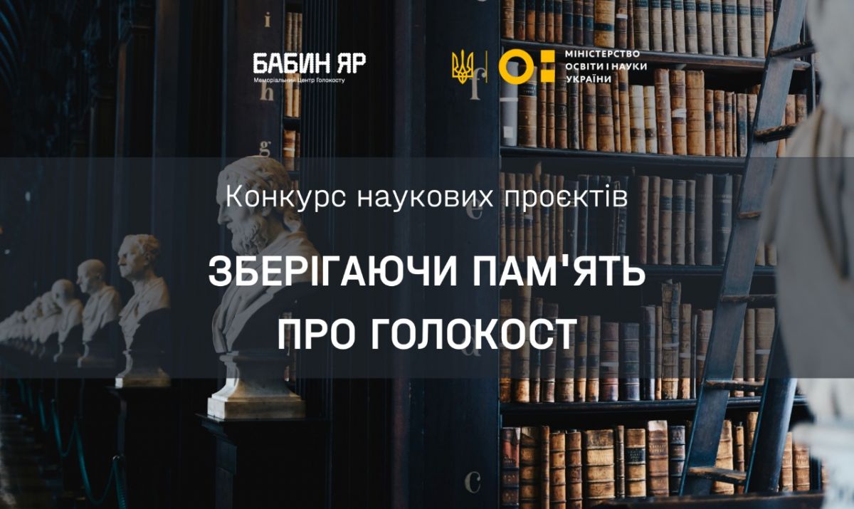 Меморіальний центр Голокосту «Бабин Яр» оголошує третій Всеукраїнський конкурс наукових, науково-дослідницьких проєктів «Зберігаючи пам’ять про Голокост». Конкурс проходить за підтримки Міністерства освіти і науки України.