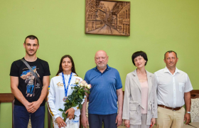 Сьогодні відбулася зустріч ректора університету, професора Олександра Безлюдного з бронзовою призеркою Чемпіонату Європи з боксу серед чоловіків та жінок до 22 років, студенткою факультету фізичного виховання Анастасією Ковальчук та її тренером Віктором Петриченком.