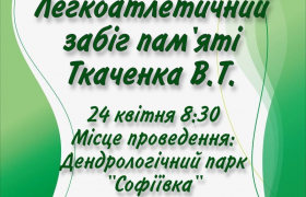 24 квітня 2021 року відбудеться легкоатлетичний забіг пам'яті Заслуженого працівника фізичної культури України, колишнього доцента Уманського державного педагогічного університету імені Павла Тичини Ткаченка Віктора Тимофійовича.