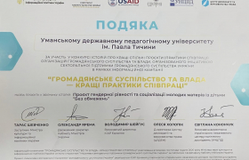 Уманський державний педагогічний університет імені Павла Тичини отримав подяку за участь у конкурсі історій про кращі спільні проєкти (практики співпраці) організацій громадянського суспільства та влади, організованого ініціативою секторальної підтримки громадянського суспільства України в...