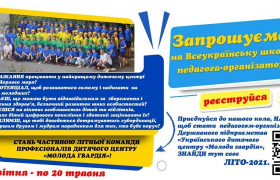 Якщо ви маєте бажання працювати у найкращому дитячому центрі на базі Чорного моря, активно і з користю провести літо-2021, тоді реєструйтеся на Всеукраїнську школу педагога-організатора та станьте частиною літньої команди професіоналів дитячого центру «Молода гвардія».