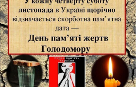 День пам’яті жертв голодоморів щорічно вшановується на державному рівні у четверту суботу листопада. У 2020 році він припадає на 28 листопада. О 16.00 годині Україна схилить голови у загальнонаціональній хвилині мовчання на знак вшанування всіх убитих голодом.