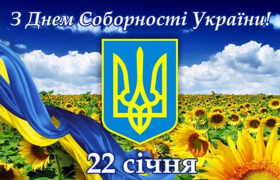 Щиросердно вітаємо Вас із великим державним святом – Днем Соборності України! Подія 22 січня 1919 року – ухвала Акту Злуки Української Народної Республіки і Західно-Української Народної Республіки – залишила глибокий...