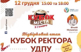12 грудня 2019 року о 15.00 та 18.00 годині в актовій залі Уманського державного педагогічного університету імені Павла Тичини проходитиме відбірковий етап ліги гумору на Кубок ректора УДПУ.