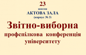 23 жовтня о 13.00 годині в актовій залі університету відбудеться звітно-виборна профспілкова конференція університету. Запрошуються делегати конференції.