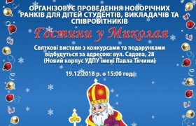 Профспілковий комітет Уманського державного педагогічного університету імені Павла Тичини запрошує на новорічні ранки дітей студентів, викладачів та співробітників. Святкові вистави з конкурсами та подарунками відбудуться 19 грудня о 15.00 годині 2018 року в актовій залі нового корпусу за...