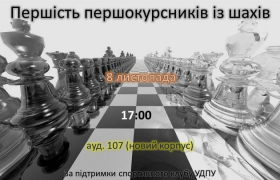 Спортивний клуб запрошує взяти участь у першості з шахів серед першокурсників. Змагання проходитимуть 8 листопада о 17.00 годині в аудиторії 107 корпусу№3 (Садова,28). З організаційних питань звертатися до керівника спортклубу Володимира Щербини.