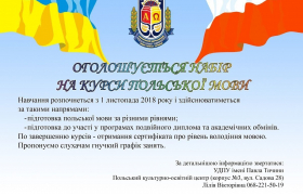 Польський культурно-освітній центр (корпус№3, вул.Садова 28) оголошує набір на курси польської мови.
