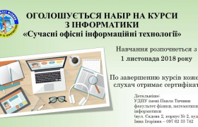 Факультет фізики математики та інформатики оголошує набір на курси з інформатики «Сучасні інформаційні технології». Запрошуються усі бажаючі.
