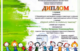 Конкурсна робота магістрантки факультету соціальної та психологічної освіти УДПУ Катерини Чупіної «Інклюзивний туризм як засіб соціально-психологічної реабілітації студентів з інвалідністю в умовах закладу вищої освіти» посіла І місце на VІ Всеукраїнському дистанційному конкурсі...