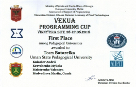 Студенти Уманського державного педагогічного університету імені Павла Тичини успішно представили альма-матер на 12-й Міжнародній олімпіаді з програмування на Кубок академіка Іллі Несторовича Векуа. Команда факультету фізики, математики та інформатики «Батарейка» у складі Андрія...
