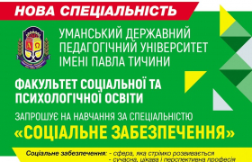 В Уманському державному педагогічному університеті імені Павла Тичини відкрито нову спеціальність 126 «Соціальне забезпечення». Підготовка фахівців буде здійснюватися на базі факультету соціальної та психологічної освіти.