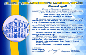 Колектив Уманського державного педагогічного університету імені Павла Тичини вітає усіх з Днем захисників та захисниць України, Днем українського козацтва та Покровою Пресвятої Богородиці!